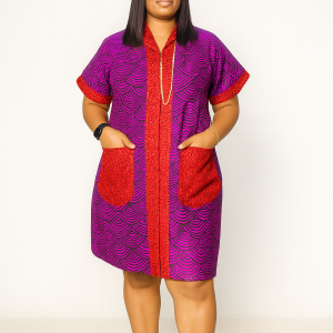Short Ankara Combo Dress - One size Fits Up To Size 18