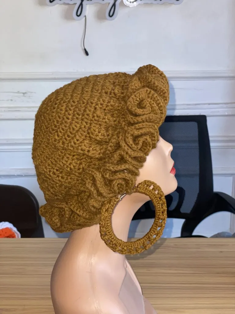 Crochet Ruffle Hat (+Free Crochet Earring )