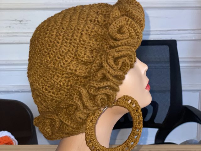 Each Ruffle Hat, comes with a FREE, Crochet Earring to match!