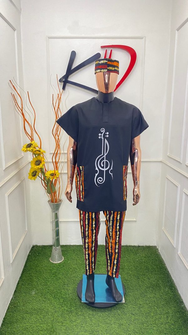 The Makarios (Blessed) Collection is a premium african inspired three (3) piece collection made with 100% Italian Wool With A Blend Of 100% cotton Tribal Printed Ankara fabric and DTF prints