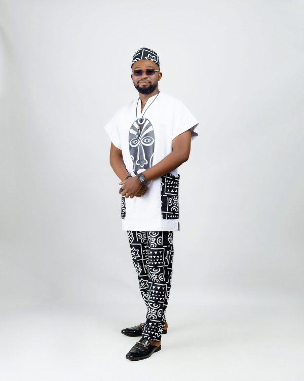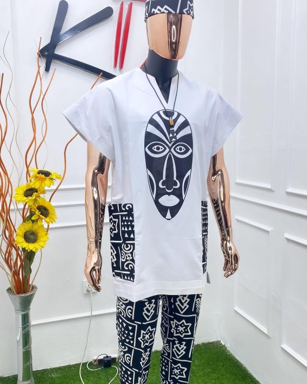 The Makarios (Blessed) Collection is a premium african inspired three (3) piece collection made with 100% Italian Wool With A Blend Of 100% cotton Tribal Printed Ankara fabric and DTF prints
