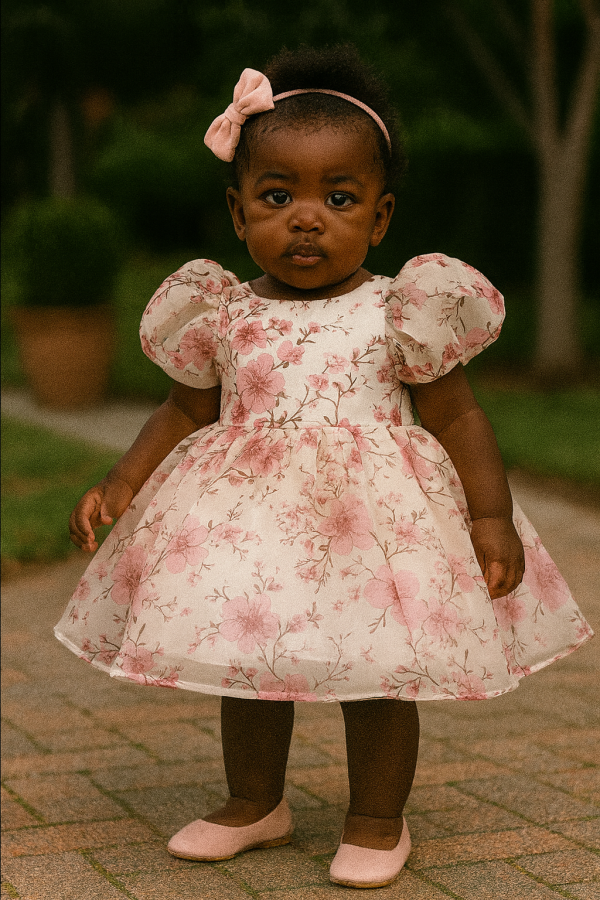 - Elegant pink floral dress for a 2 year old