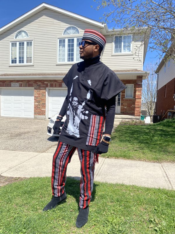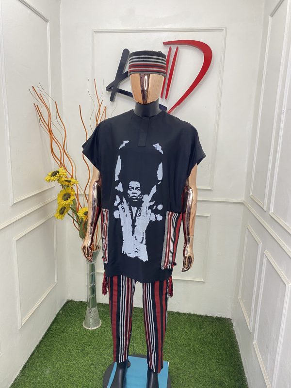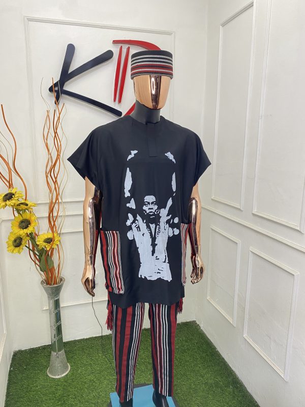 The Makarios (Blessed) Collection is a premium african inspired three (3) piece collection made with 100% Italian Wool With A Blend Of 100% cotton Tribal Printed Aso Oke fabric and DTF prints